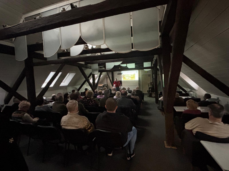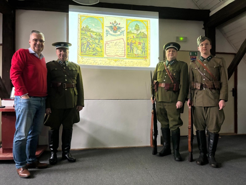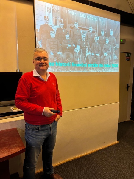 V klubovně muzea vládla před přednáškou skvělá atmosféra, v hudebním podkresu zazněl Pochod finanční stráže. Přišli také členové mladoboleslavské jednoty Československé obce legionářské a Klubu vojenské historie Česká Lípa v uniformách finanční stráže, které nám Jaroslav Beneš na konci popsal. Zájem byl veliký, přišlo 45 zájemců.