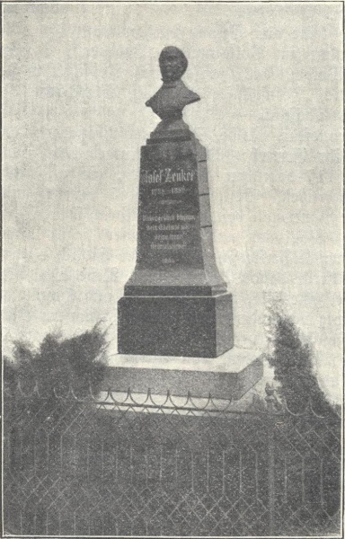 Na jaře roku 1904 vyhlásil ředitel valteřické školy Josef Hocke sbírku na stavbu pomníku Josefu Zenkerovi. Mezi přáteli, učiteli, žáky i obyvateli se v krátké době podařilo vybrat potřebný obnos. Pomník vyrobil sochař Wilhelm Spölgen ze Šluknova, bronzovou bustu dodal pan Fiedler z Prysku. Pomník, zdobící prostranství před valteřickou školou, byl slavnostně odhalen 9. října 1904 a nesl nápis: