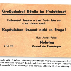 Když 30. dubna padl Hitler, 2. května byl dobyt Berlín a v českých městech spontánně vznikala povstání, ústup Wehrmachtu na západ se sice zrychlil, i tak vydal fanatický maršál Schörner 6. května bojové skupině „Der Führer“ rozkaz potlačit povstání v Praze a vyvést z ní německé civilisty. Vojáci této skupiny, skalní nacisté, cestou páchali zločiny a poslední boje svedli v Praze u Trojského mostu. Na pomoc Praze se vydala i Koněvova armáda spolu s polskou. Do osvobozené Prahy (které přišla na pomoc Vlasovova armáda od Příbrami a po vojenské stránce povstání velmi pomohla) přijely tyto jednotky ráno 9. května, kdy boje zde probíhající byly už jen velmi sporadické.