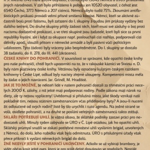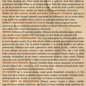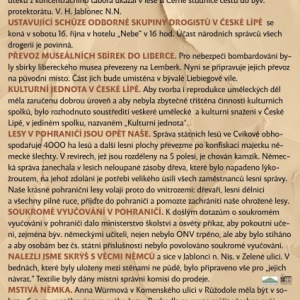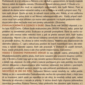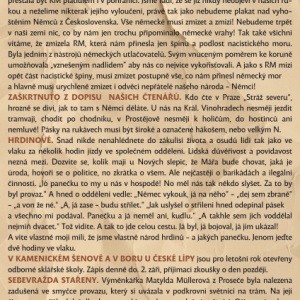 Skončila 2. světová válka a v pohraničí se toho dělo opravdu hodně. Byly to události radostné z nabyté svobody, plné očekávání věcí příštích. Ale také události, do kterých se promítla msta, zlost a velká nenávist vůči všem Němcům, nejenom nacistům. Skoro každý týden se objevila krátká zprávička o darování finančního obnosu jednotlivců i kolektivů na vybudování nových Lidic.