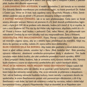 Co se psalo v novinách před 80. lety – Stráž severu č. 89-94: na Českolipsko se přijely léčit podvyživené děti, „ženě z Krkonoš“ se nelíbí kolik Němců dostává antifašistické legitimace, v Novém Boru vznikl „Blok českého skla“ a Mozart s Beethovenem nebyli nacisté!