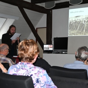 První přednáška Ing. Jaroslava Beneše z cyklu Česká Lípa německá, česká a židovská byla dlouhá, trvala něco málo přes dvě hodiny. Přesto více než 70 posluchačů zaujala. Přišli i členové Jednoty Československé obce legionářské v Mladé Boleslavi a Klubu vojenské historie Česká Lípa v dobových stejnokrojích a vytvořili tím celé přednášce krásnou kulisu.