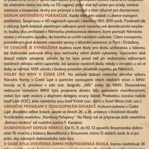 Hodně zpráv vyzývá k pomoci při žních, sbírání léčivých bylin. Lidé se také chtěli bavit. Chodili na manifestace, taneční zábavy, dožínky, které jim slibovaly oslavu až do rána. Časopis informoval o dění zejména na Liberecku (kde měl i redakci), přinášel projevy významných politiků té doby, kteří navštívili Liberec, informoval o dění ve světě a měl i svoje dopisovatele na Českolipsku, Novoborsku, Kamenickošenovsku. Připomeňme si rok 1945, rok válečný, revoluční, budovatelský, pro Němce žijící v pohraničí velmi deprimující, pro většinu lidí však radostný z nabyté svobody a plný očekávání věcí příštích.